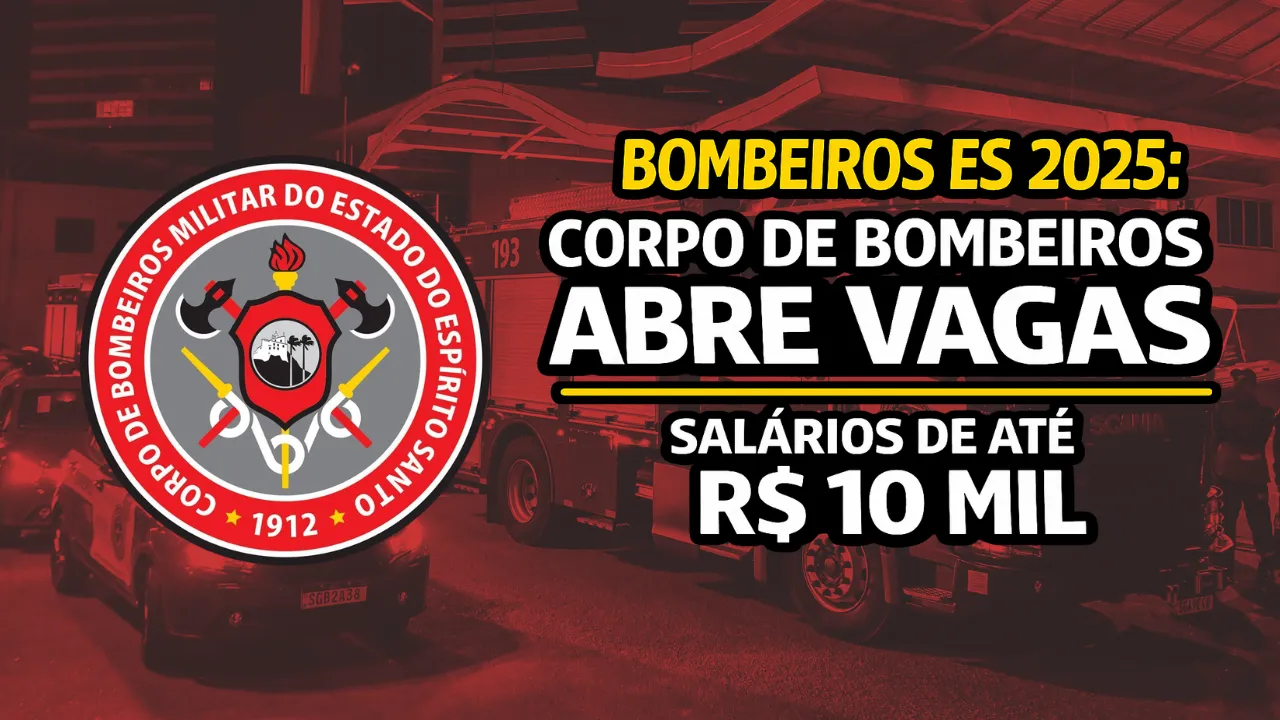 O Corpo de Bombeiros Militar do Espírito Santo (CBMES) publicou edital de concurso público para Oficial Combatente, oferecendo 6 vagas imediatas e 400 vagas para cadastro de reserva. A seleção é uma excelente oportunidade para quem busca estabilidade, carreira militar estruturada e remuneração atrativa, que pode ultrapassar R$ 10 mil após a formação.