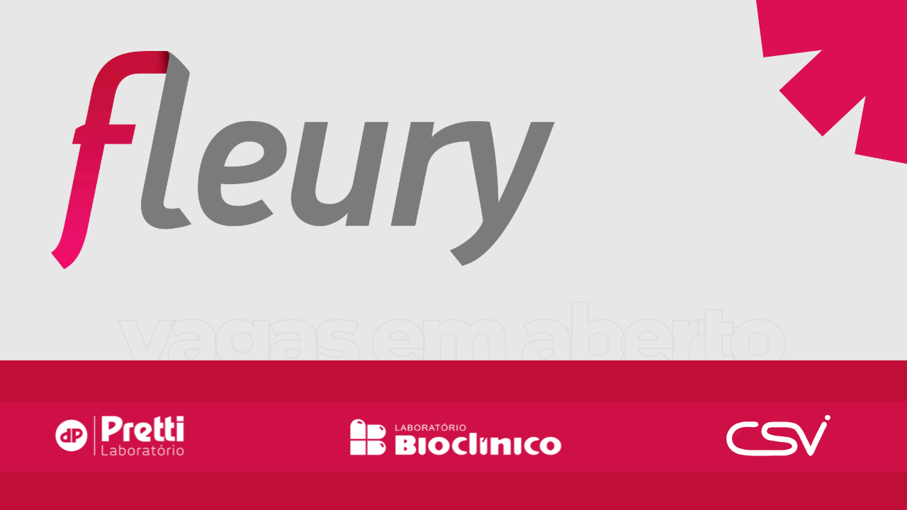 O Grupo Fleury é referência nacional em medicina diagnóstica e em constante expansão pelo país. No Espírito Santo, o Grupo Fleury é responsável pelas marcas Laboratório BioclínicoPretti e CSV, consolidadas na Grande Vitória como referências em exames laboratoriais e atendimento de saúde de qualidade. Trabalhar em qualquer uma das unidades dessas marcas significa fazer parte de um dos maiores ecossistemas de saúde integrada, preventiva e híbrida do Brasil, com impacto real na vida dos capixabas.